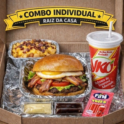 1 hambúrgueres + batata cheddar e bacon + 1YKO + MOLHO pra matar a fome de verdade.