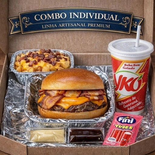 CAIXAS A PARTIR DE 20,90 - BURGUER - BATATA CHEDDAR E BACON E REFRESCO 💰 Valores a partir de R$20,90, variando conforme os hambúrgueres escolhidos. 📸 Imagem ilustrativa. Para montar seu combo, selecione os hambúrgueres desejados no cardápio.